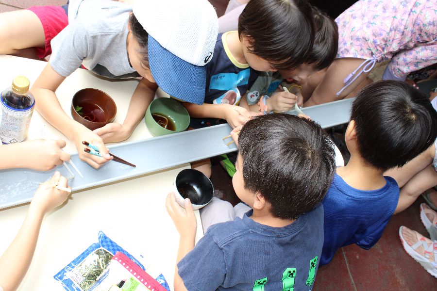 本日のイベントの目玉は『流し素麺』です。コロナ禍で見合わせていたのと天候の関係でできなかったため5年ぶりの開催となりました。