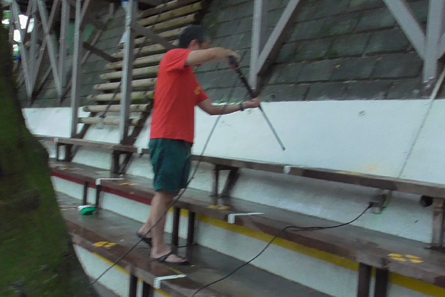 水遊びの合間には手の空いているお父様が園の石段を高圧洗浄機で綺麗に洗い流してくださりピカピカになりました。