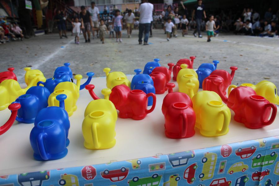 今年復活した未就園児の種目は『ちびっこぞうさん』でした。よーいどん!で象さんの形をしたお好みの色のジョーロを一つ選んだら花畑にお水をあげます。ジョーロはそのままお持ち帰りのお土産です。