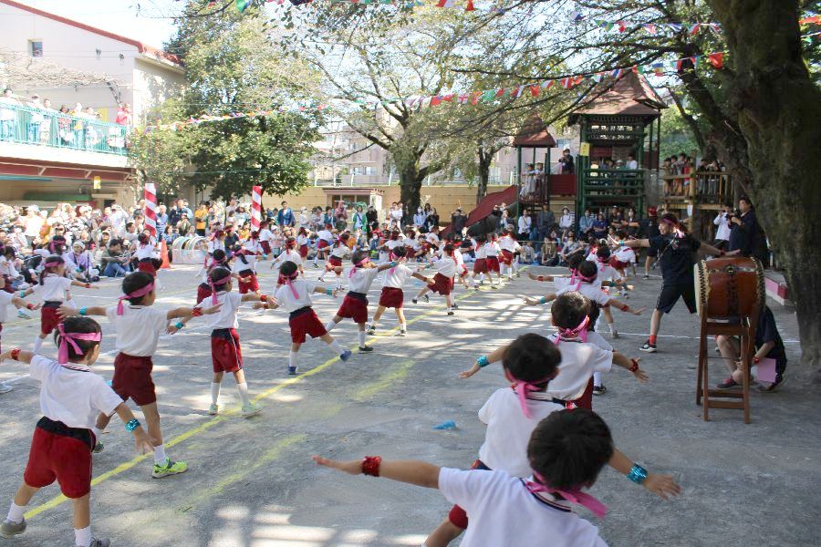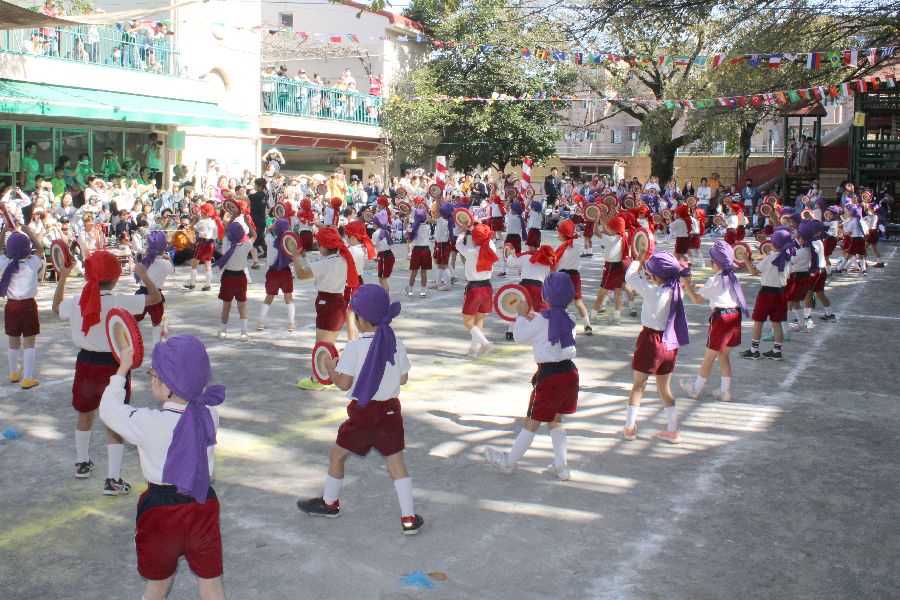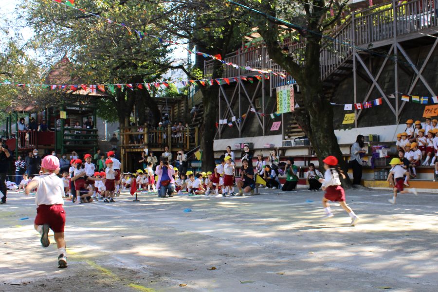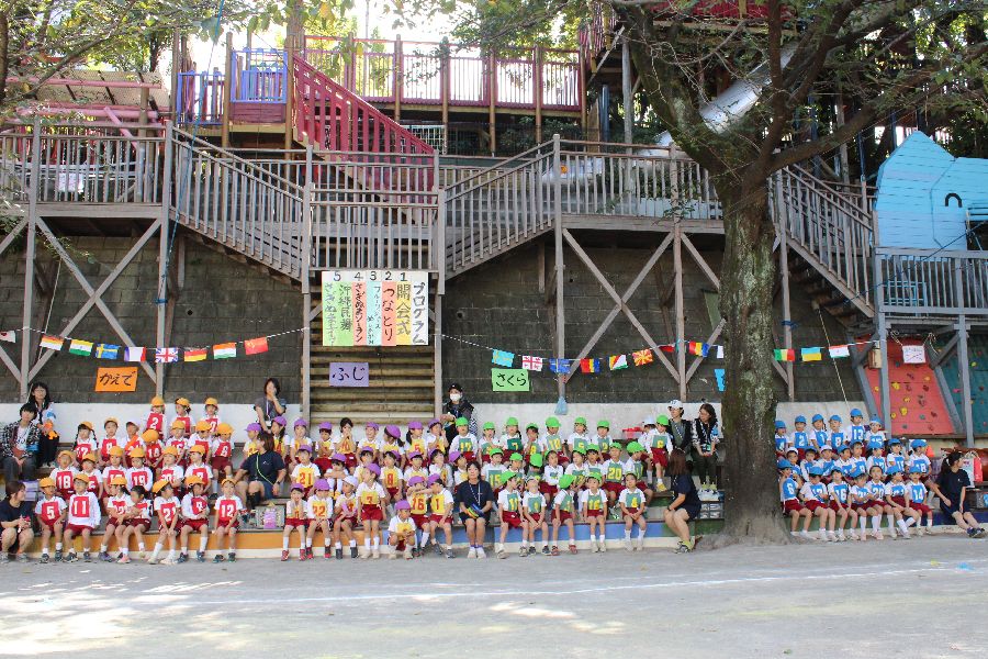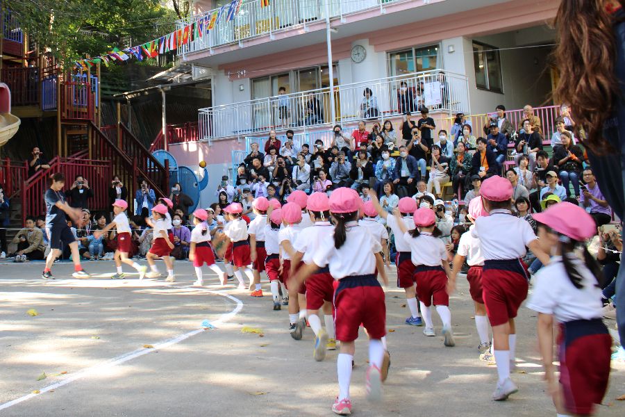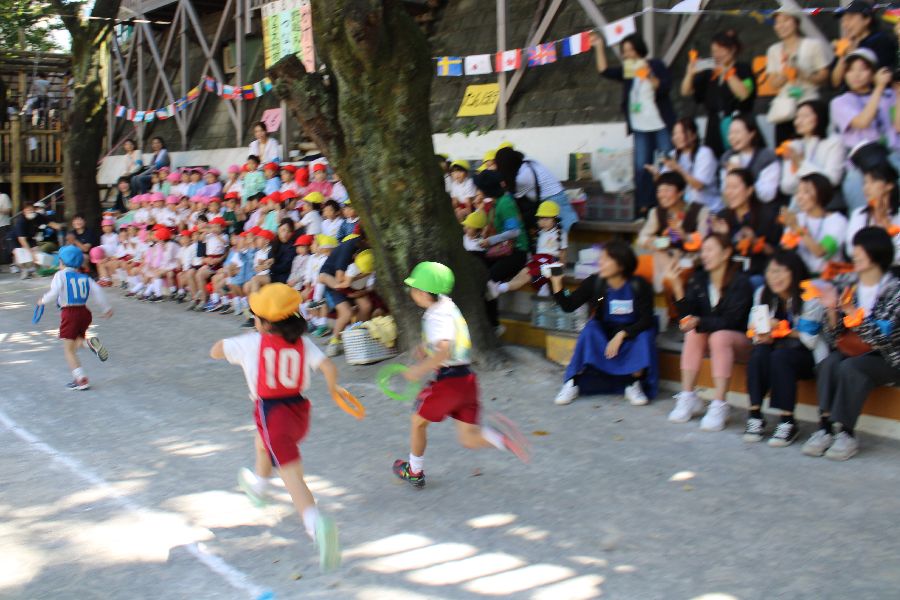 先週の年少組『うんどうかい』に引き続き、年中組年長組の運動会を開きました。2学年合同で行う入場制限の無い開催は4年ぶりで、遠方より多くのご祖父母の方もご来園くださいました。