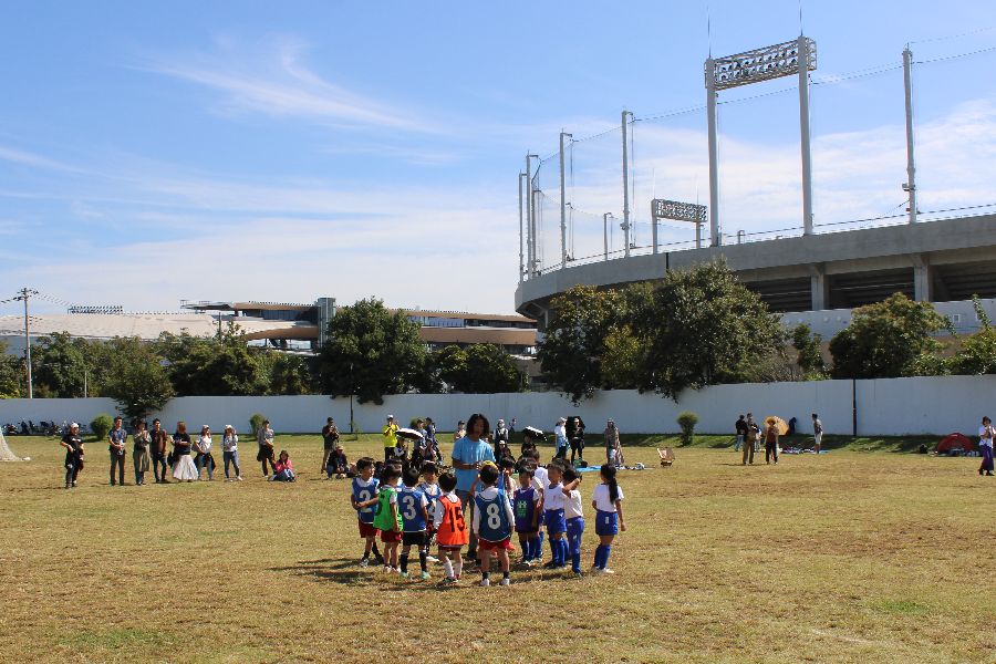 秋晴れの下、川崎市幼稚園サッカー秋季交流大会が開催され、当園で練習している課外サッカークラブ所属の年長組が出場しました。