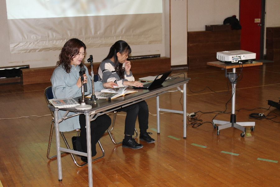 抑揚のある優しい語り口の朗読に、たんぽぽの会が絵本の場面合わせて独自に作曲した素敵なメロディーが重なり、子ども達は次第に絵本の世界に引き込まれている様子でした。