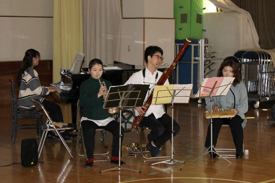 音楽会が終わると子ども達全員が体育室を後にするまで「さんぽ」の曲を演奏してくださり、楽しい音楽会は終了しました。