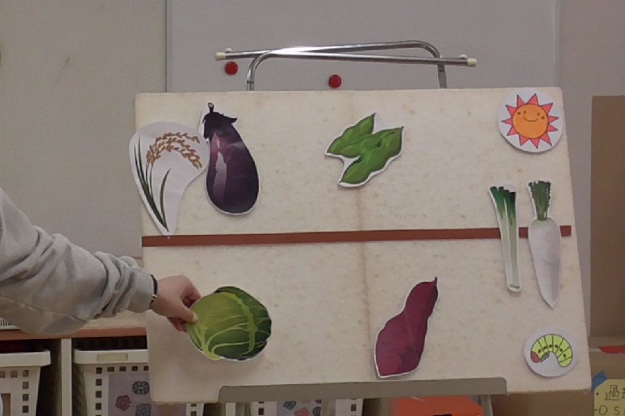 最終回は色々な野菜をテーマに座学形式で行いました。野菜は花から実になる事や、地上で育つ野菜、地中で育つ野菜など学びを深めました。