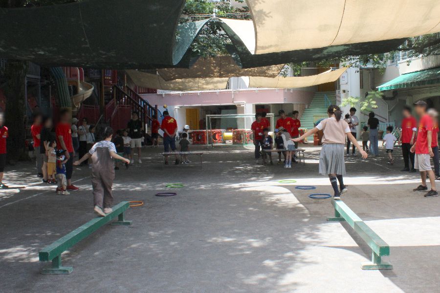 本日は今年度最初の園庭開放イベントとして『ミニ運動会』を企画。32組、総勢107名が園庭に集い楽しみました。