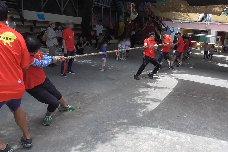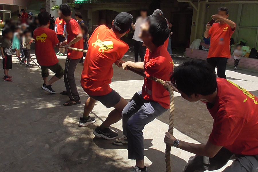 次に行った『綱引き大会』は子ども同士で対決した後、おやじとも勝負し、最後はおやじ同士地区別対抗を行い大盛り上がりでした。