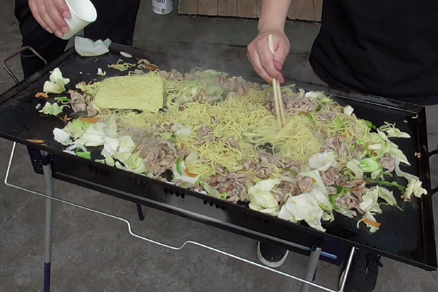 そして今回は大きな鉄板でお野菜たっぷりの大量の焼きそばも作られました。これも参加した皆さんの胃袋の中に・・・。