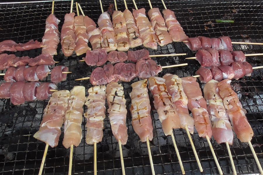 お昼はお待ちかねの『バーベキュー大会』。3台のバーベキューコンロに一斉に炭をおこして、次々に肉やソーセージが焼き上がっていきました。