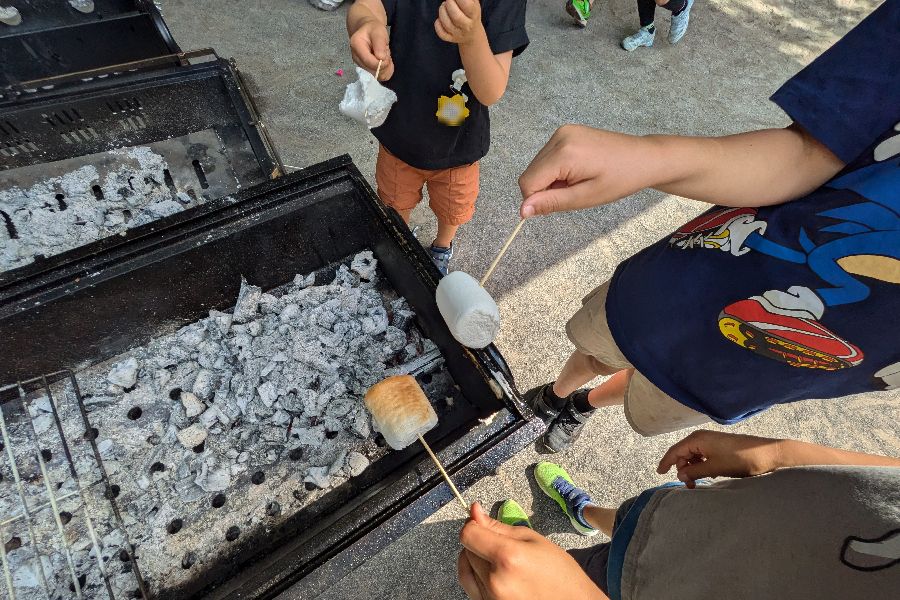 その他、炭の残り火でマシュマロを焼いたスモアも味わっていました。トロトロで美味しそうでした。