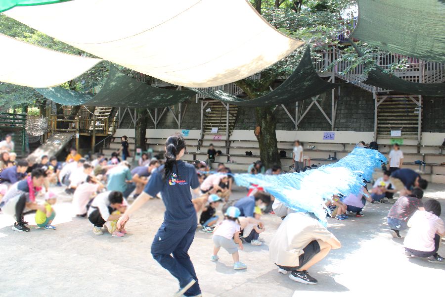 今年は水族館や海の魚をテーマに親子で色々な海の生き物になって遊びました。時には親子で大波を乗り越える種目もあり子ども達は大喜びでした。