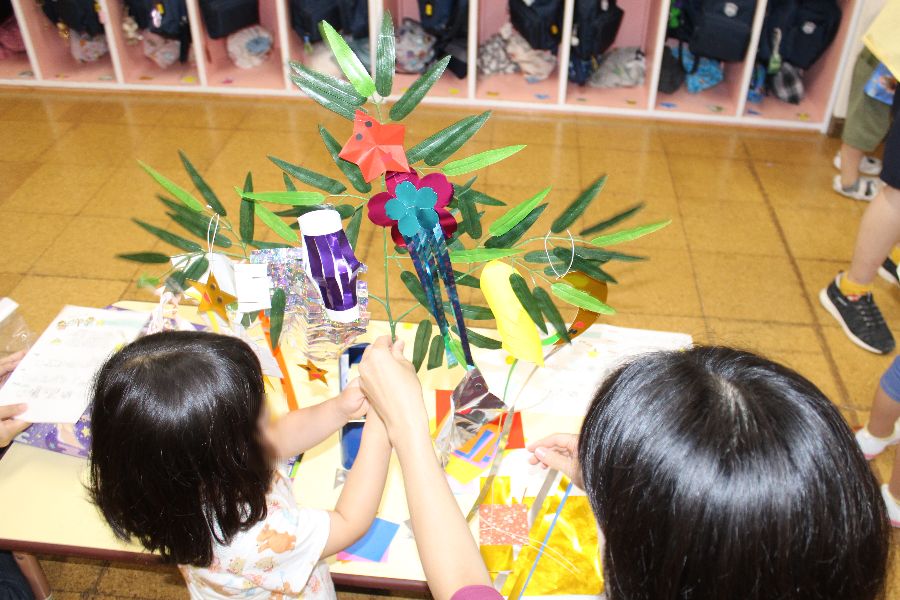年少組保育参観『親子で作ろう七夕飾り』の様子