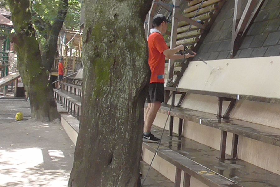 そして今年も石段を水洗いするお仕事も・・・。高圧洗浄機(ケルヒャー)で石段をピカピカに洗浄しくださいました。