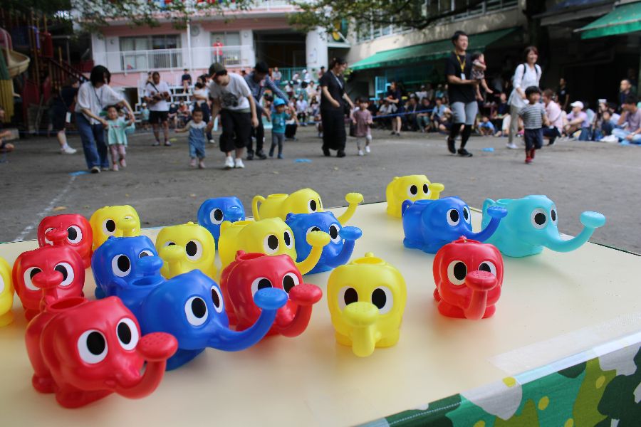 未就園の子ども達も沢山ご来園いただき種目に参加してくれました。お土産のぞうさんジョーロでお花にお水をあげてくれました。