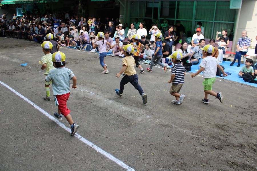 2種目目は「はしりっこ」です。年少組はトラック1周を全力で走りました。またぞう組さんも保護者が待っているゴールまで走りました。