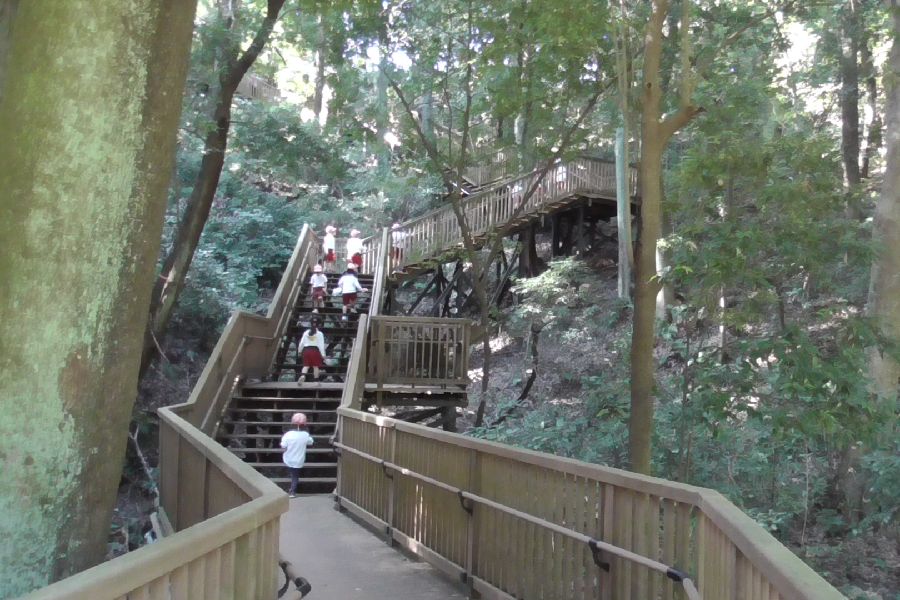 湿生花園からは拠点の古代芝生広場に繋がる近道の木製階段があります。とても長い階段ですが何度も上り下りする子ども達。ついて行くのは一苦労でした。