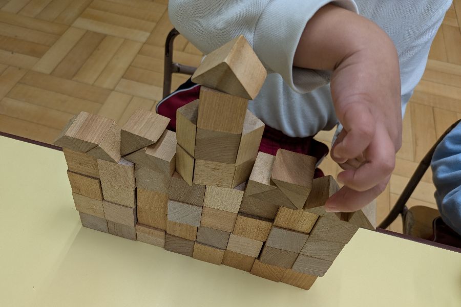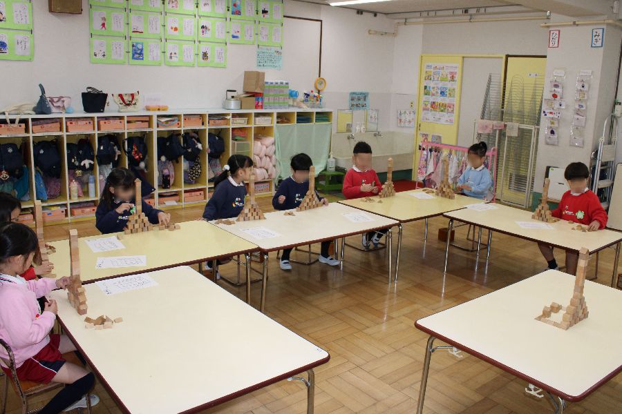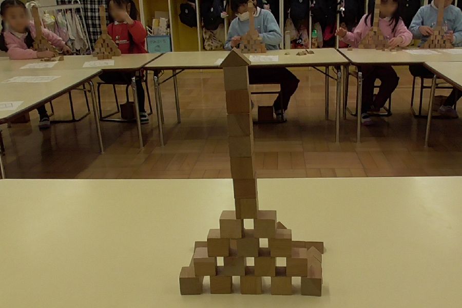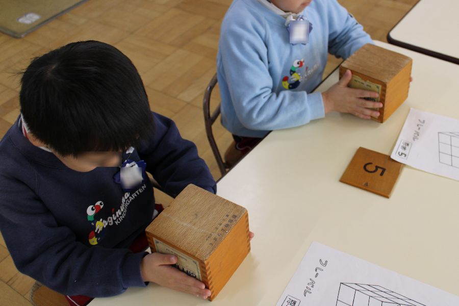 園には第10恩物まであるので、年長組は今後も他の恩物に触れる機会を設ける予定です。恩物をきっかけに構築や造形に目覚め、将来設計士や建築関係の職業に就く子がいるかもしれません。