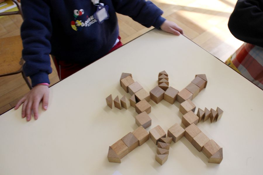 その中でも年長児に特に適していると言われている第5恩物を年長組の子ども達と楽しみました。