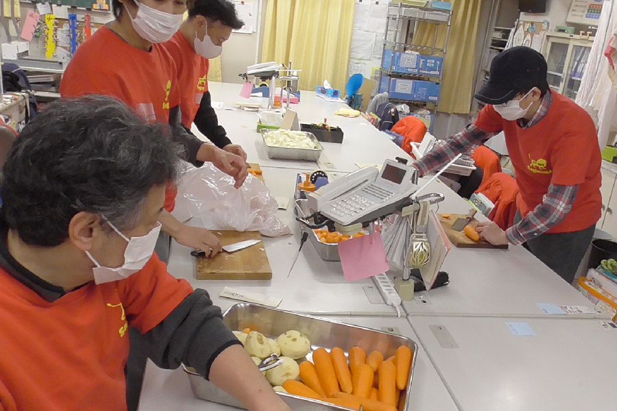 一方調理担当のお父様方は昼食作りに取り掛かります。本日のメニューは寒いこの時期にぴつたりの『ポトフ』です。