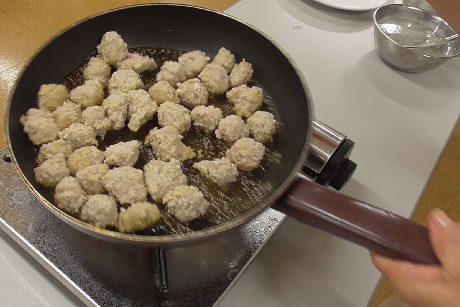 今年は机上講習で肉団子の実演を行っていただき、出来立て熱々の肉団子の試食も行いました。