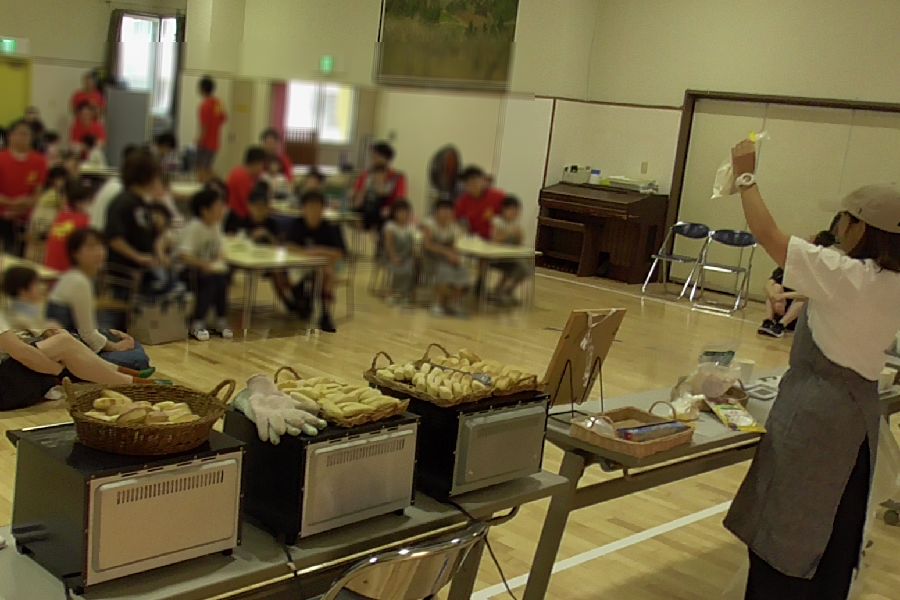 ティップネスさんとの楽しい運動が終わると子ども達が形成したパンが焼き上がり皆で試食しました。