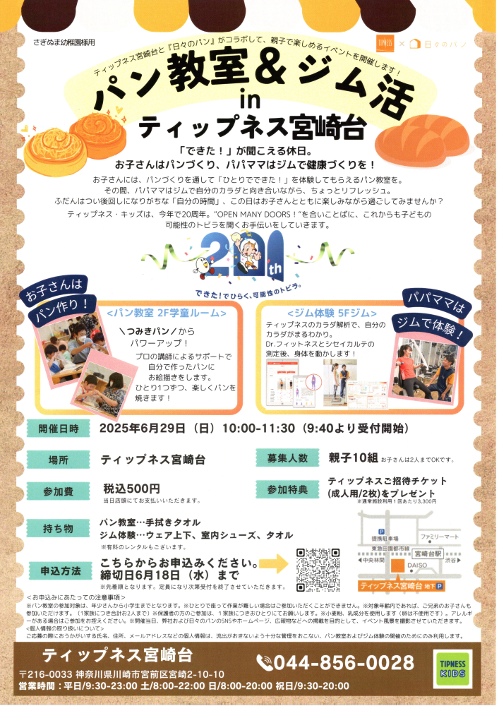 ▶6/29(水)パン教室&ジム活 in ティップネス宮崎台 チラシ pdf.