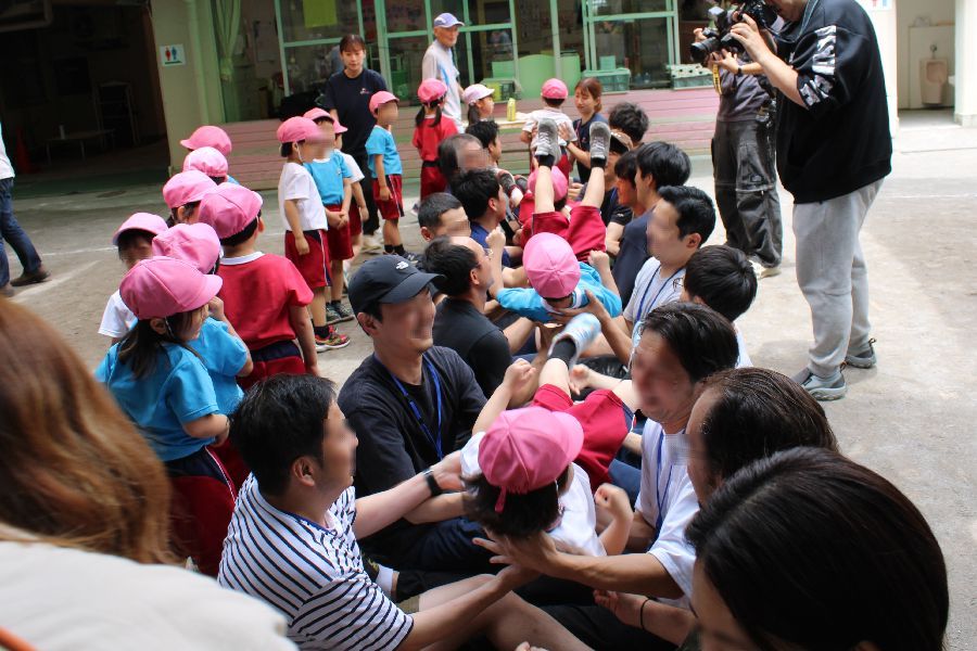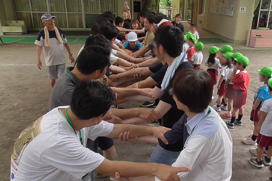 中でも大人の方々が体を寄せ合って作った長い人間トンネルは子ども達も大喜びでした。でも全員が通過するまでこの姿勢を保つのはとても大変そうでした。
