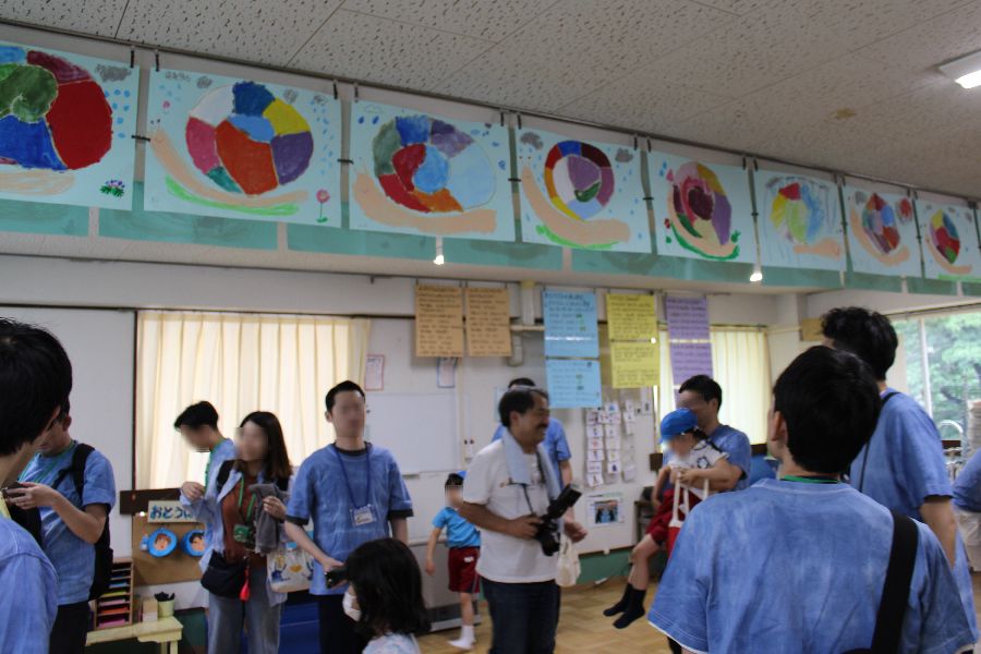 どの学年も最後は各保育室に上がっていただき、最近仕上げた絵画の展示を見てもらい沢山褒めていただき散会となりました。