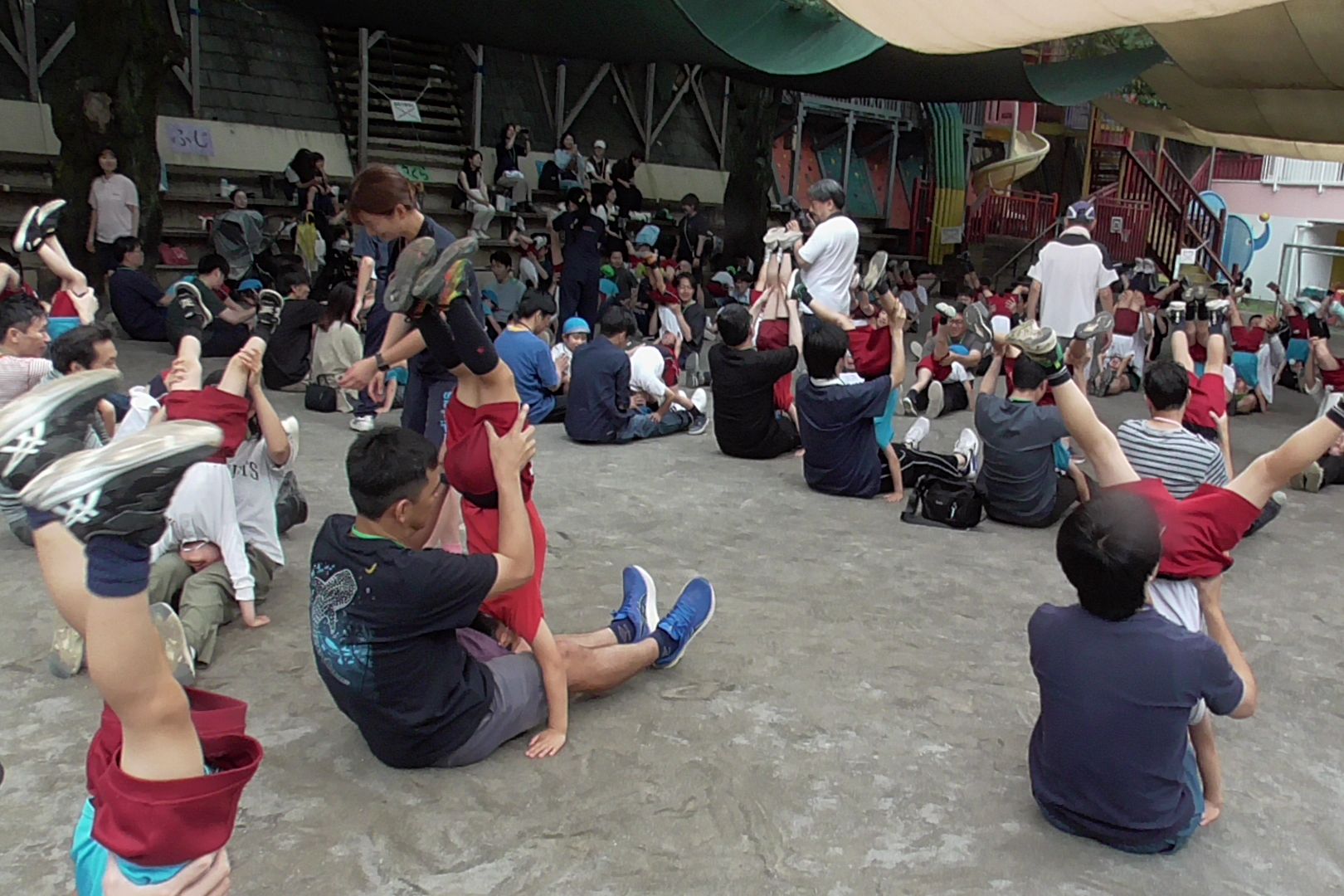 見ていて一番圧巻だったのは、クラス毎に円形になり子どもを一気に持ち上げ回転する人間メリーゴーランドでした。