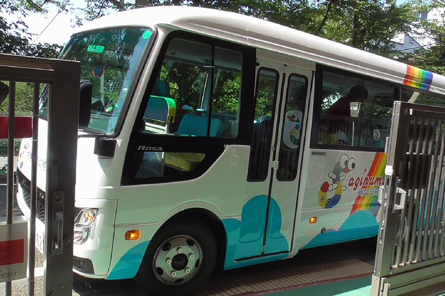 当園の送迎バスは通称『きらきら号』と呼んでいます。昨年のワゴン車(12名定員)から、今年度よりマイクロバス(41名定員)きらきら2号が仲間入りし、現在2便の運行をしています。