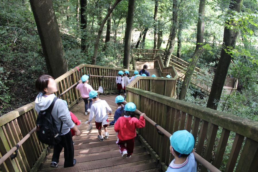 天候に恵まれ、年中組と年長組が一緒に県立の『東高根森林公園』へ秋の遠足に出掛けました。