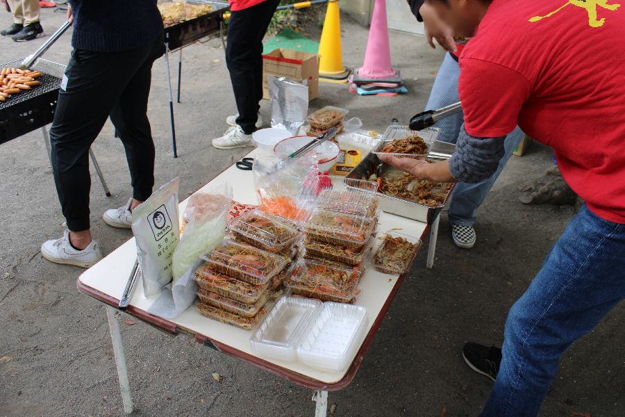 大量に作った今回は焼きそばは食べやすいようにパックに入れ、本格的な屋台の様でした。もちろんお味の方も最高です。
