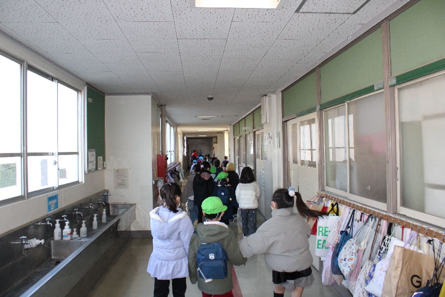 続いて1年生が一人ひとりと手を繋ぎ、広くて長い廊下を通って1年生の教室まで案内してくれました。