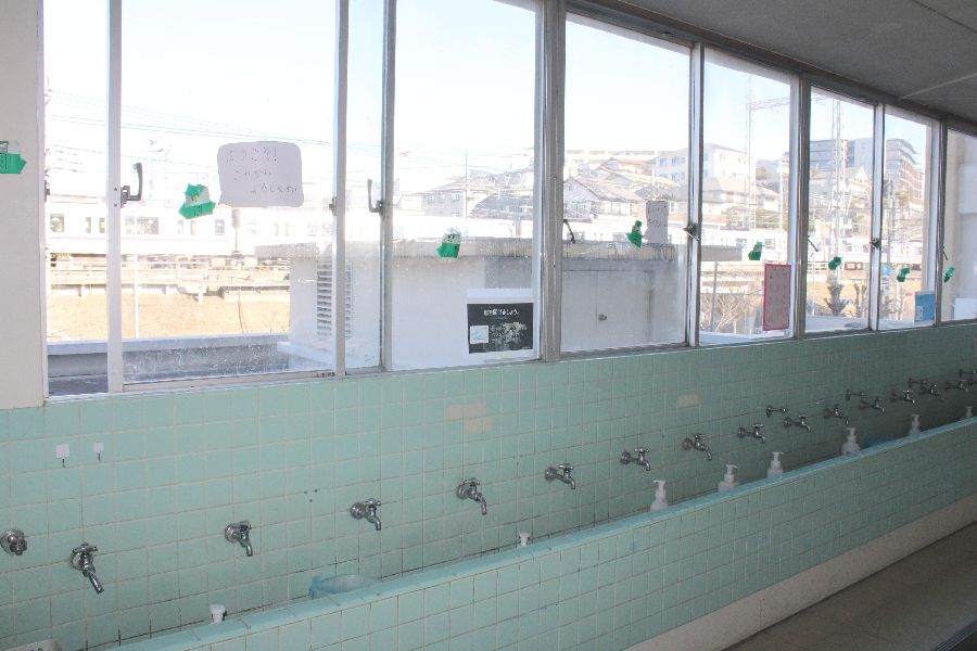 廊下には長~い手洗い場がありビックリ!窓から田園都市線が見えました。
