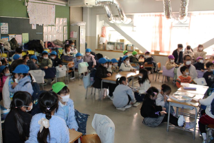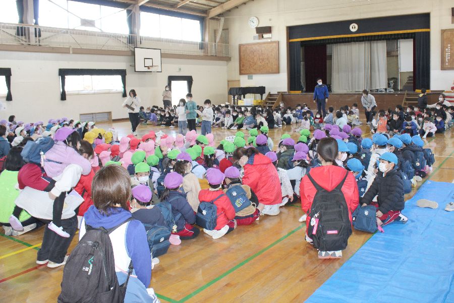 最後は再び体育館に集まり終わりの会が開かれました。明日は土橋小学校にうかがう予定です。