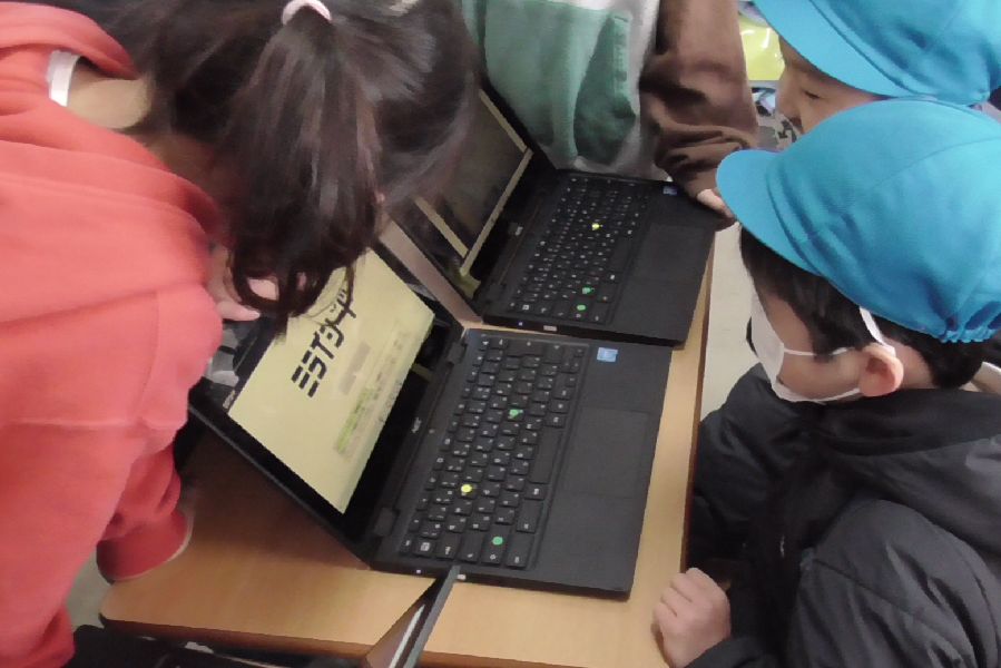 授業で使用する教科書や道具箱を見せてもらったり、ランドセルを背負わせてもらったり、パソコン操作なども体験しました。