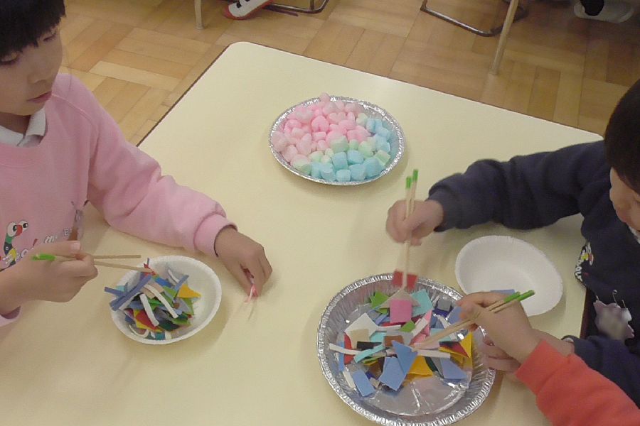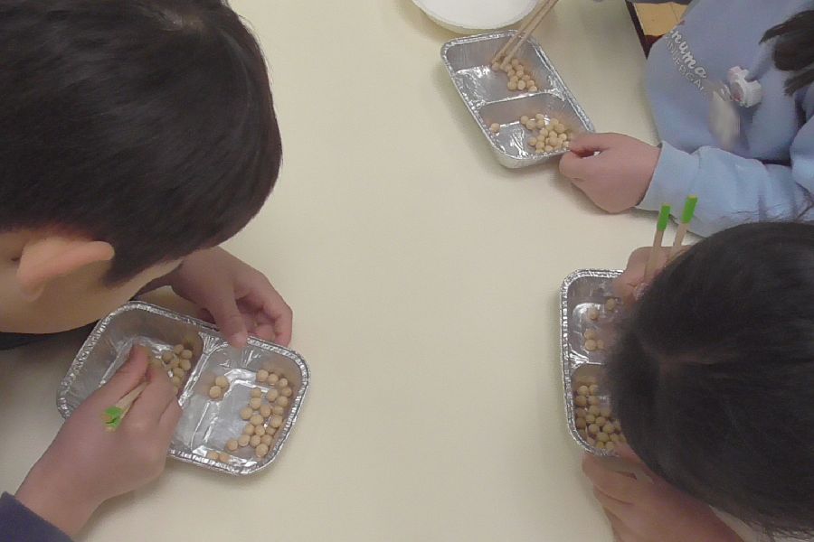 最後は進学に向けて、正しい『箸使い』の練習をゲーム感覚で行いました。
